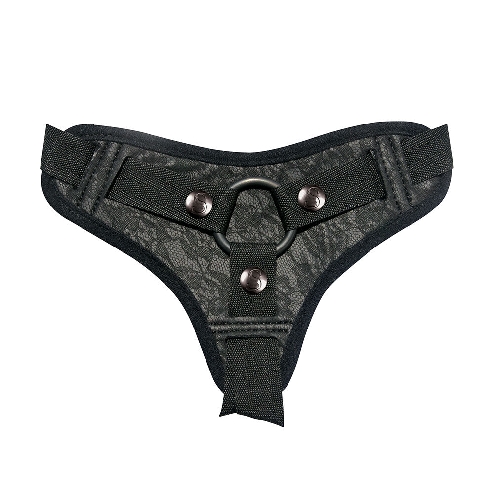 This beautiful strap on has velvety fine lace fabric and hugs your curves.